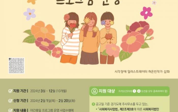 경기도가 올해부터 선보이는 대표 복지정책인 ‘경기 360° 돌봄’의 하나로 야간․휴일에도 장애인이나 그 가족을 대상으로 돌봄프로그램을 제공하는 사업 운영기관 31개 내외를 공모·지원한다. 경기도는 2월 1일부터 20일까지 도
