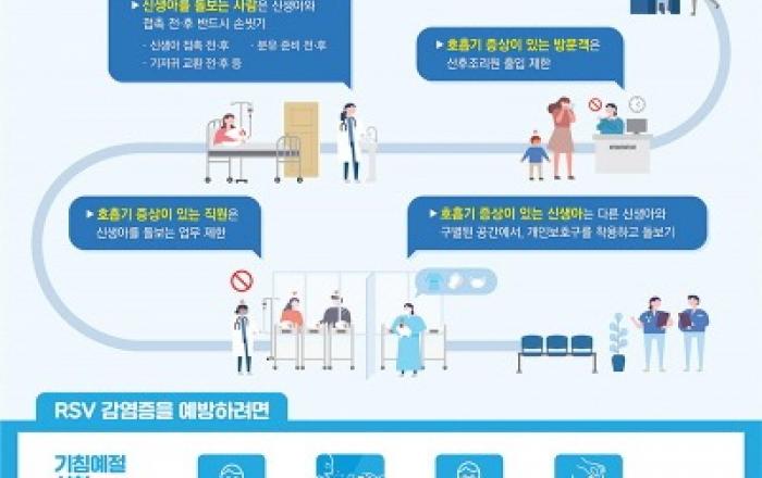 대구광역시는 감염병 발생 정보 모니터링 결과, 호흡기세포융합바이러스 감염증 입원환자가 최근 3주간 지속적으로 증가함에 따라, 집단발생 예방을 위한 선제적 조치를 위해 산후조리원, 신생아실 및 영유아 보육시설 등에서 호흡기감염병 예방·관리를 강화해 줄 것을 당부했다.