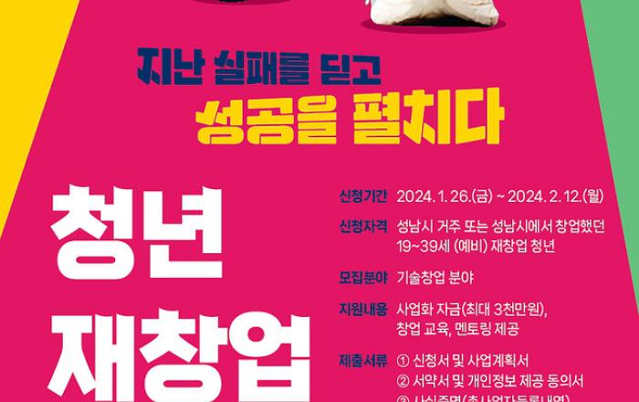 성남시는 오는 2 월 12 일까지 ‘ 청년 재창업 지원사업 ’