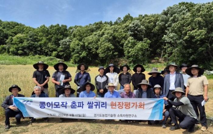 경기도농업기술원 소득자원연구소는 17일 연천군 청토귀리회 회장 송이진 농가에서 쌀귀리와 콩을 이용한 이모작 재배법 현장 평가회를 실시했다. 귀리재배 전문농업인, 곡물유통업체, 농업기술센터 등 20명이 참석한 이번 평가회는 쌀