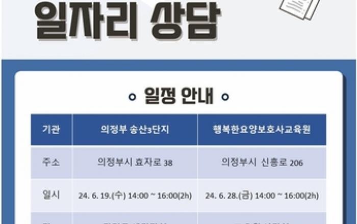 의정부시는 현장 중심 취업지원 서비스 '찾아가는 일자리 상담 창구'를 운영한다. 찾아가는 일자리 상담은 일자리센터 방문이 힘들거나 취업 정보에 대한 접근성이 부족해 구직활동에 어려움을 겪는 시민을 위해 마련했다. 지난달에 이어 6월에는 19일 송산 3단지 입주민