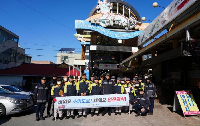 세종소방서가 지난 25일 대평전통시장에서 전통시장 화재 안전 강화를 위한 캠페인을 펼쳤다. 이번 캠페인은 지난 22일 서천수산물특화시장 화재 발생에 따라 설 명절을 앞두고 분주한 전통시장에서 유사 사고를 방지하고 안전을 강화하기 위해 진행됐다. 세종