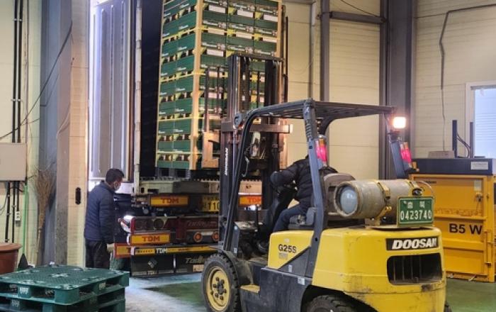 보은군은 청정자연에서 생산한 '보은 황토배'가 대만인의 입맛을 사로잡기 위해 80톤, 약 20만불의 규모로 올해 첫 수출길에 올랐다고 23일 밝혔다. 군에 따르면 이번 보은 황토배 수출은 보은황토배영농조합법인(대표 배갑식)이 주관해 마로면 기대리에 위치한 공동선별장