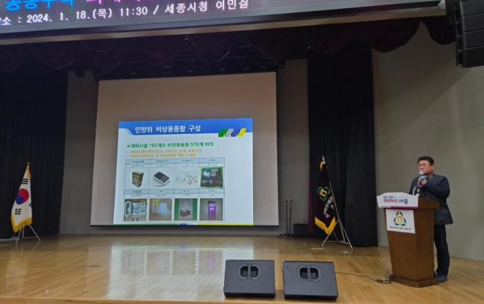 세종특별자치시가 지난 18일 시청 여민실에서 시민의 안전 문화 의식을 높이고자 공동주택 관리소장을 대상으로 재난 안전 분야 사업 홍보를 실시했다. 이번 홍보는 전체 시민의 76.3%가 공동주택에 거주하고 있는 상황에서 지진·화재 등 각종 재난 상황시 인