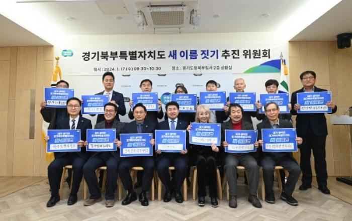 경기도가 학계, 직능단체, 종교계 등 민간 중심으로 17일 경기도청 북부청사에서 경기북부특별자치도의 새로운 시작을 위한 ‘새 이름 짓기 추진위원회’를 구성하고 첫 회의를 열었다. 경기도는 경기북부의 정체성, 역사성을 상징하고 가치를 대표하며 경