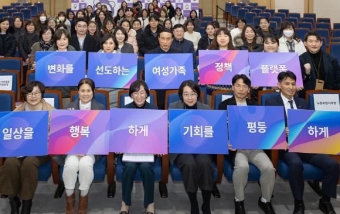 경기도여성가족재단이 9일 경기도인재개발원 다산홀에서 비전선포식을 개최하고 새로운 비전과 전략체계를 선보였다. 이날 선포식에서 재단 김혜순 대표이사는 인사말에 이어 새롭게 제정된 비전과 4가지 전략방향을 제시했다.