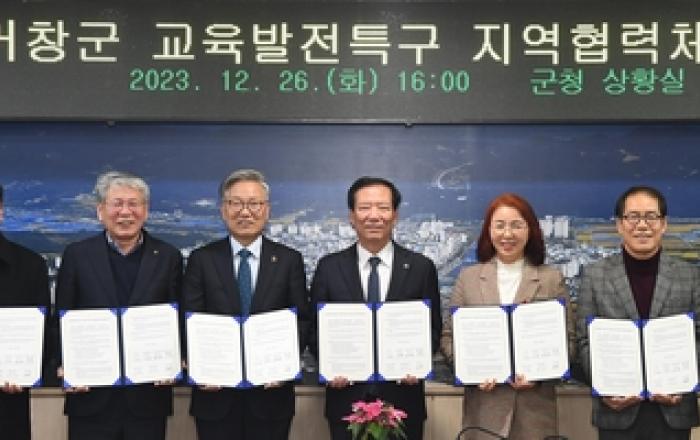 거창군은 지난 26일 군청 2층 상황실에서 교육청, 지역대학, 학교, 공공기관, 지역 기업 대표 7명과 실무자들이 모여 교육발전특구 지역협력체 회의를 열고 특구 시범지역 지정 공모 신청을 위한 상호 협약을 체결했다. 이날 회의는 구인모 군수, 이명주 거창교육지원청
