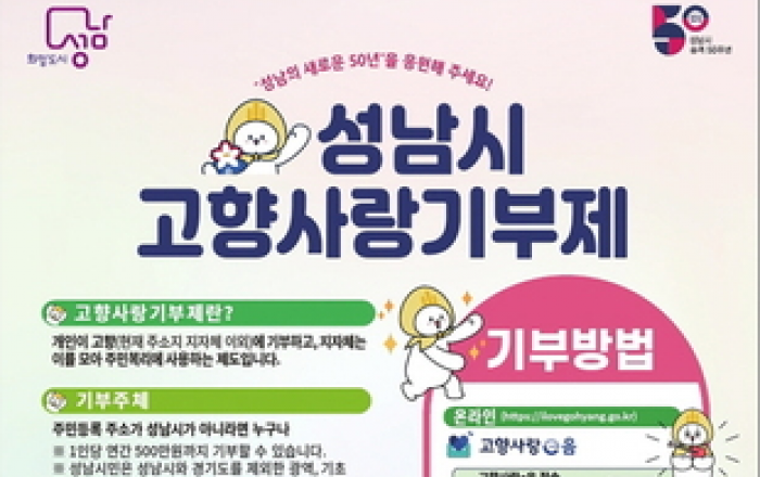 성남시는 26 일 고향사랑기부제 시행 1 주년을 앞두고 기부금 목표액을 200%