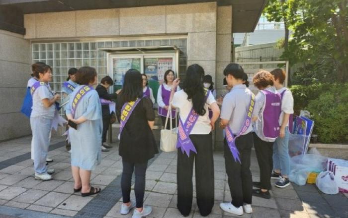 경기도여성가족재단 젠더폭력통합대응단은 13일 수원역 로데오 거리에서 2024년 보라데이 연합 캠페인을 진행했다. ‘보라데이’는 매월 8일로 지정된 가정폭력과 아동학대 예방의 날이다. 경기도젠더폭력통합대응단 산하 여성