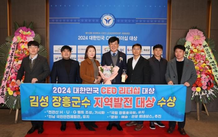 김성 장흥군수가 '제12회 2024 대한민국 CEO 리더십 대상' 시상식에서 지역발전 대상을 수상했다. 20일 서울 더플라자 호텔에서 열린 이번 시상식은 중앙일보가 주최하고 산업통상자원부가 후원했다. 대한민국 CEO 리더십 대상은 탁월한 리더십으로 위기를 극복하