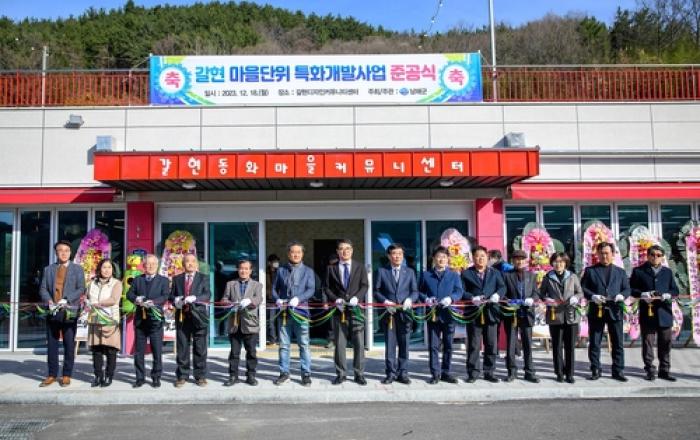 남해군은 지난 18일 '삼동면 갈현 마을단위 특화개발사업' 준공식 및 주민화합한마당을 개최했다. '갈현 마을단위 특화개발사업'은 일반농산어촌개발사업의 일환으로 추진됐다. 2018년 공모사업에 선정돼 2019년부터 2023년까지 5년간 19억 원의 사업비로 갈현마