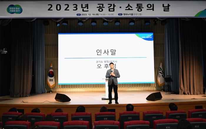 경기도는 19일 북부청사에서 ‘2023년 북부청사 공감·소통의 날’을 진행했다. ‘2023년 북부청사 공감·소통의 날’은 올해 한 해 동안 1년간 도민을 위해 봉사해 온 직원들을 격려하고, 직원들 간의 공감과 소통의 기회를 제공하기 위해 마