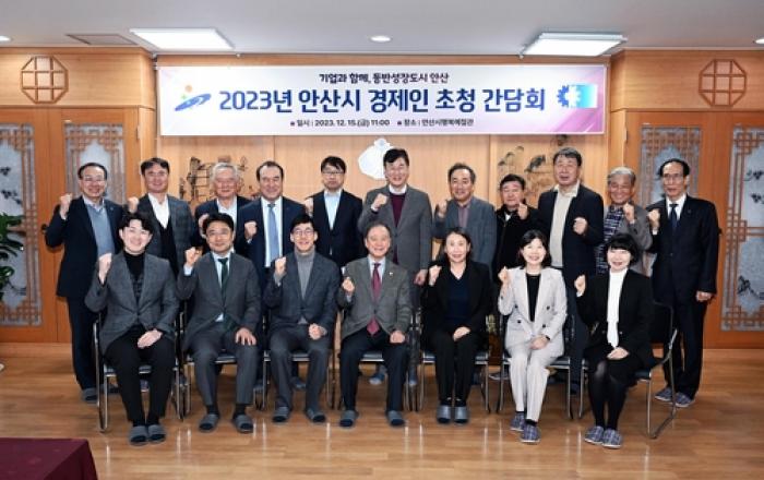 안산시는 지난 15일 안산시행복예절관에서 기업 경쟁력 강화 및 협력방안 논의를 위한 '경제인 초청 간담회'를 개최했다고 18일 밝혔다. 이번 간담회는 지난해 7월 실시한 '안산상공회의소 의원 초청 간담회' 시 협의한 기업들과 활발한 현장 소통을 위한 정례 간담회 개