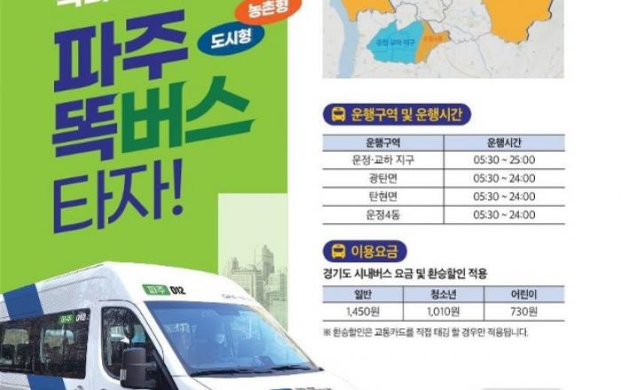 원하는 시간에, 원하는 장소에서 탑승해 원하는 목적지로 이동할 수 있는 신개념 교통수단 ‘똑버스’가 파주 탄현면·광탄면·운정4동에서 운행을 시작한다. 경기도와 경기교통공사는 18일부터 파주 똑버스에 대한 시범 운행을 진행한