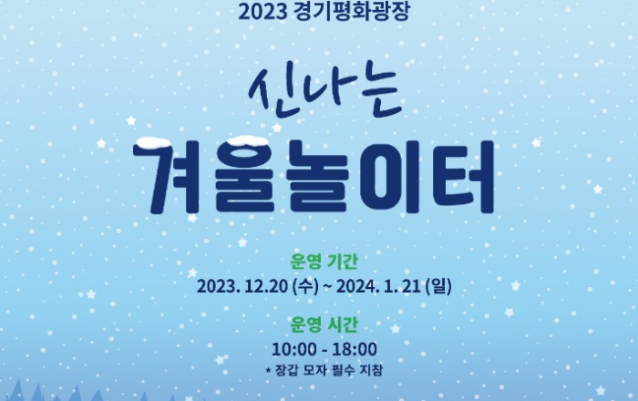 경기도가 겨울철, 가족이 함께 즐길 수 있는 ‘신나는 겨울 눈 놀이터’를 경기도청 북부청사 경기평화광장에서 진행한다. ‘신나는 겨울 눈 놀이터’ 행사는 12월 20일부터 2024년 1월 21일까지 매일 오전 10시부터 오후 18시까지 운영한다. 축제장에는 스케