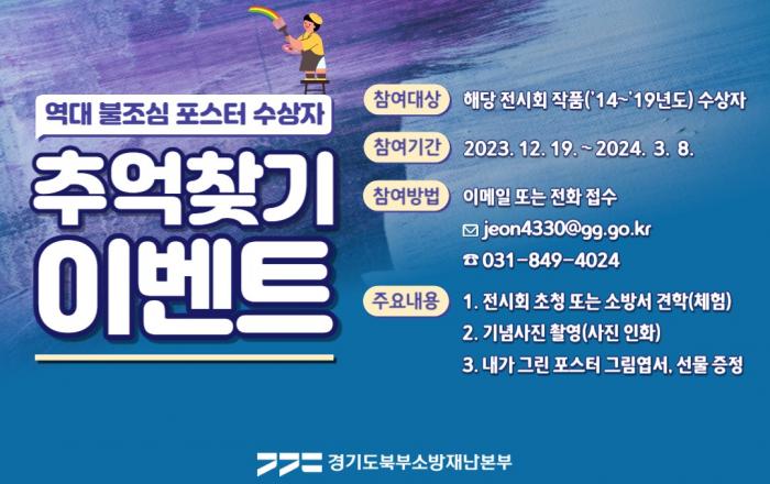 경기도북부소방재난본부는 19일부터 29일까지 일산킨텍스 제2전시관 키즈월드 입구에서 ‘Since 2014: 우리는 작은 소방관’ 역대 어린이 불조심 포스터 우수작 전시회를 개최한다. 이번 전시회는 역대 경기북부 어린이 불조심