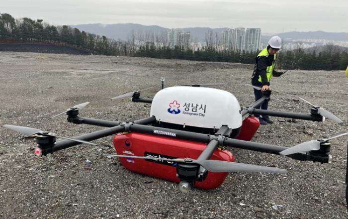 성남시는 14 일 금곡동 매립장에서 ‘2023 년 드론 실증도시 구축사업 ’