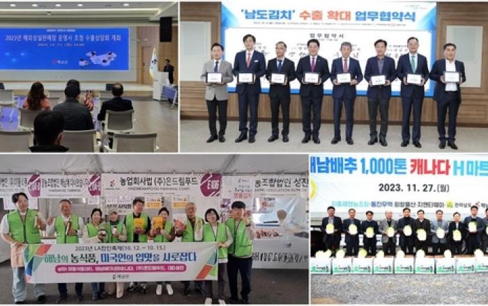 해남군이 우수한 농수특산물의 해외수출로 세계시장 개척에 속도를 높이고 있다. 군은 지난 11일 수출을 희망하는 20개업체가 참여한 가운데 해외상설판매장 운영사 초청 수출상담회를 가졌다. 이번 상담회는 해외판로 개척에 어려움을 겪고 있는 지역 업체들에게 다양한 수