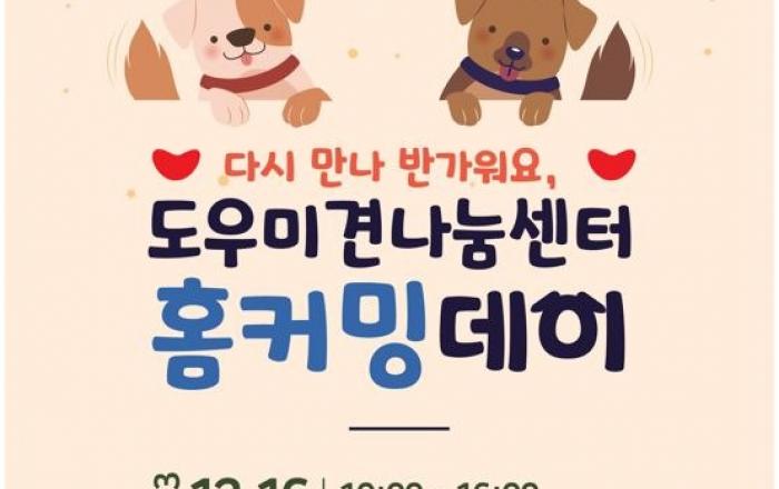 경기도가 12월 16일 도우미견나눔센터(화성시 마도공단로1길 181-15)에서 반려동물 입양문화 활성화 및 도우미견나눔센터 개관 10주년 기념 ‘다시 만나 반가워요, 도우미견나눔센터 홈커밍데이’를 개최한다. 이번 행사는 도우