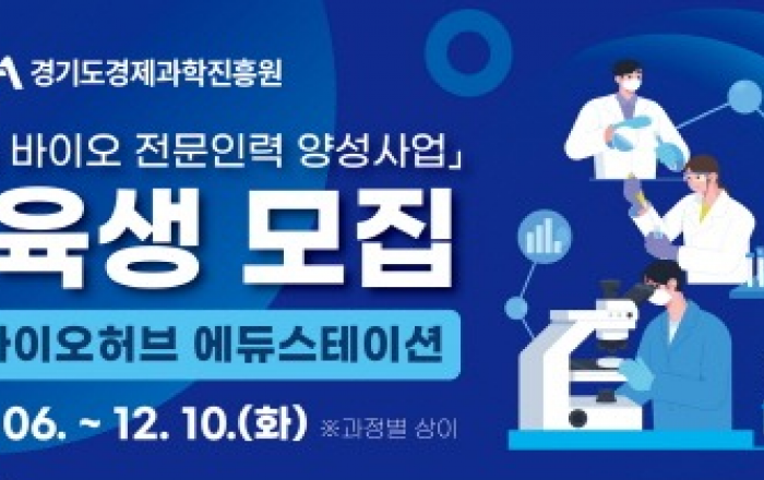 경기도와 경제과학진흥원 바이오산업본부는 한국바이오협회, 서울대병원, 대학교 등 전문기관과 손잡고 현장맞춤형 바이오 인재를 양성을 위한 교육생을 18일부터 모집한다. 경기도에서는 바이오 전문인력 양성 계획으로 바이오센터 내 강의 및 실습 공간을