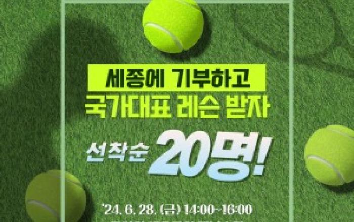 세종특별자치시가 고향사랑기부제 답례품 중 하나인 ‘세종시청 테니스 대표팀과 함께하는 테니스 레슨’을 시작한다. 테니스 레슨은 오는 28일 오후 2시부터 2시간 동안 조치원체육공원 테니스장에서 진행되며 원활한 수업 운영을 위해 참여 인원은 선착순 20명으로 제한된다.