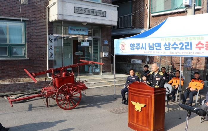 일제강점기부터 1980년대까지 사용하다가 양주시 한 마을회관에 보관 중이던 수총기(水銃器)가 일반에 공개된다. 경기도소방재난본부는 양주시 남면 상수2리 마을주민(이장 신현문‧60세)들이 마을회관에 보관 중이던 수총기를 경기소