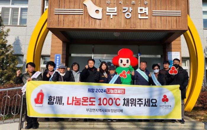 세종특별자치시 부강면 지역사회보장협의체가 지난 5일 부강전통시장에서 복지사각지대 발굴과 나눔 문화 확산을 위한 길거리 홍보 캠페인을 진행했다. 이날 지역사회보장협의체위원들은 지역복지 민관협력 사업 등 홍보 안내문을 배부하며 복지 사각지대에 놓인 소외이웃 발굴과 희망