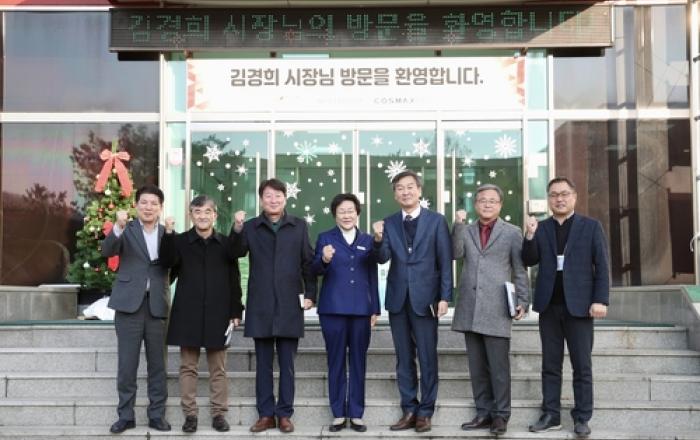 김경희 이천시장은 5일, 이천시 마장면 이평리에 위치한 코스맥스엔비티㈜를 방문해 현장 관계자를 격려하고 기업애로에 대한 현장의 목소리를 청취하는 자리를 가졌다. 민선 8기 출범 이후 김 시장은 지역경제 활성화 및 일자리 창출에 기업이 지역에 미치는 영향이 절대적임을