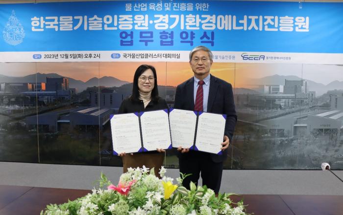 경기환경에너지진흥원과 한국물기술인증원이 5일 물 산업 육성 및 진흥을 위한 업무협약을 체결했다. 업무협약식은 대구에 위치한 국가물산업클러스터 대회의실에서 김혜애 경기환경에너지진흥원장, 김영훈 한국물기술인증원장을 비롯한 기관 관계자들이 참석한 가