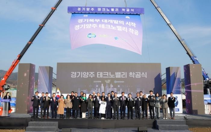 경기북부 대개발(大開發)을 이끌 양주테크노밸리 착공식이 5일 오전 경기 양주시 마전동 테크노밸리 사업 현장에서 열렸다. 이날 열린 양주테크노밸리 착공식에는 강수현 양주시장을 비롯해, 공동사업시행자인 김동연 경기도지사, 김세용 경기주택도시공사 사장과 정성호 국회의원,