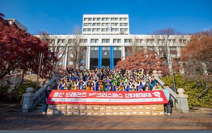 용산 소재 민관학 연합 봉사 단체인 ‘용산 드래곤즈’가 지난 4일 용산 지역 아동복지시설 어린이들에게 크리스마스 선물을 전달했다. 용산 드래곤즈는 매년 연말 지역사회 어린이들에게 선물과 응원 메시지를 전달하는 ‘미리 크리스마스 산타 원정대’ 활
