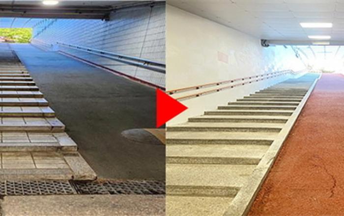 성남시는 노후화된 분당구 수내동 내정 지하보도에 대한 현대적 리모델링 작업을 최근 마치고 주민들에게 개방했다고 5 일 밝혔다. 성남시는 안전사고 예방 및 도시