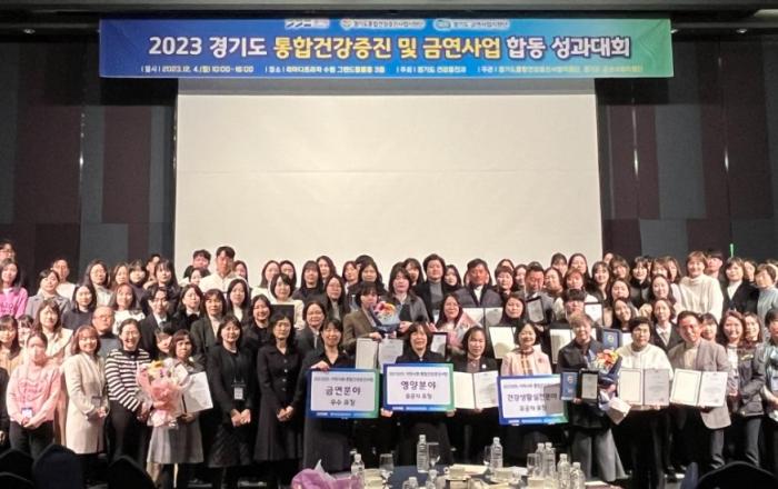 경기도는 4일 라마다프라자 수원에서 시군 보건소 담당 공무원과 전문인력, 경기도 통합건강증진사업지원단과 금연사업지원단 등 200여 명이 참석한 가운데 ‘2023년 통합건강증진․금연사업 합동 성과대회’를 개최했다. 경기도 통합
