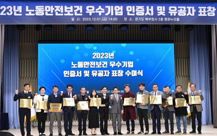 경기도가 올해 노동안전보건 분야 우수기업 25개소를 선정해 포상했다. 경기도는 1일 경기도청에서 오후석 경기도 행정2부지사, 금철완 노동국장, 윤덕룡 경기도일자리재단 대표이사, 경기도 노동안전지킴이 등 200여 명이 참석한 가운데 ‘2023년