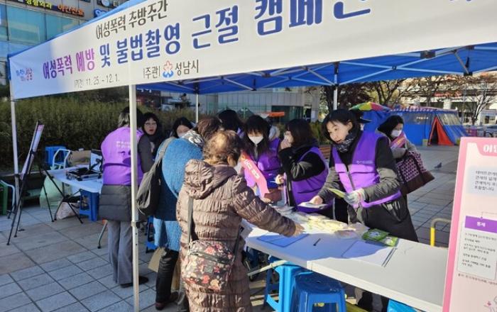 성남시는 여성 폭력 추방 기간(11.25~12.1)을 맞아 12월 1일 오후 2시 분당 야탑역 광장에서 ‘여성 폭력 예방과 불법 촬영 근절’에 관한 민·관 합동 캠페인을 벌였다. 이날 캠페인은 “여성 폭력 없는 안전한 일상”을 슬로건으로 열렸다. 성남시여성단체협