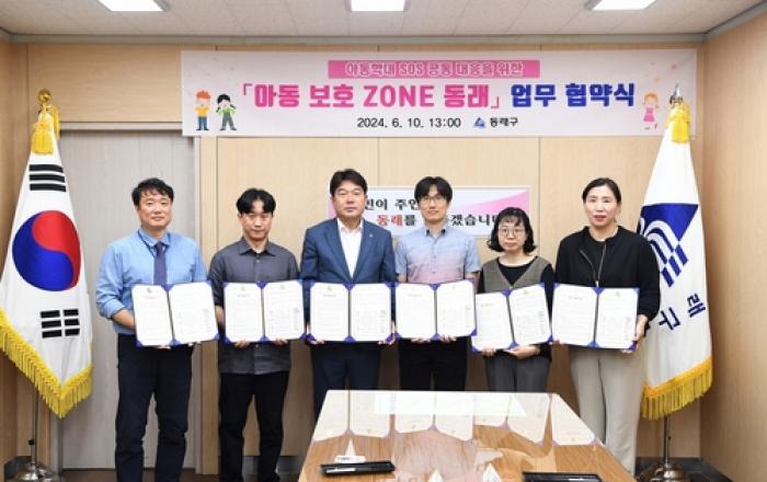 부산 동래구는 학대 피해(의심) 아동 등 보호가 필요한 아동의 선제적 공동대응 협력체계 구축을 위해 2024년 '아동 보호 ZONE 동래' 협약식을 개최했다고 밝혔다. '아동 보호 ZONE 동래' 협약은 아동학대 의심 신고가 계속적으로 늘어나고 있는 상황에서 학대피