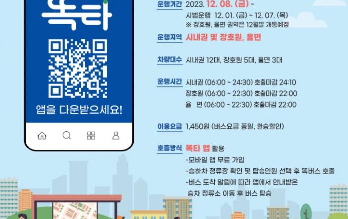 원하는 시간에, 원하는 장소에서 탑승해 원하는 목적지로 이동할 수 있는 신개념 교통수단 ‘똑버스’가 이천 관고동 등 11개 동, 장호원읍 및 율면 일원에서 단계적으로 운행을 개시한다. 경기도와 경기교통공사는 12월 1일부터