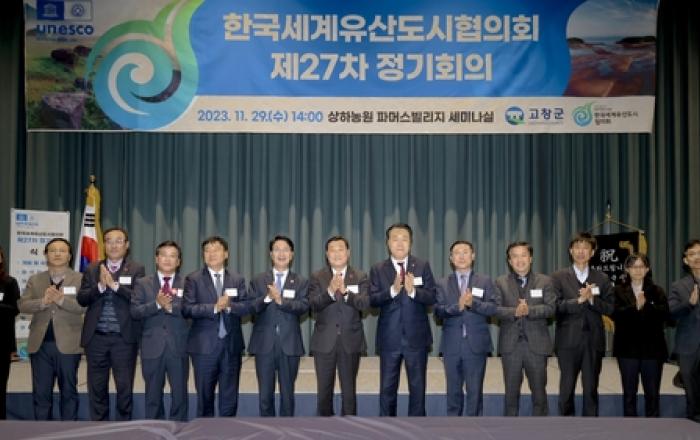 합천군은 제27차 한국세계유산도시협의회 정기회의가 지난 29일 고창 상하농원 파머스빌리지에서 개최됐다고 30일 밝혔다. 이날 한국세계유산도시협의회 회장인 김윤철 합천군수와 부회장 심덕섭 고창군수를 비롯한 회원 도시 대표들이 참석했다. 한국세계유산도시협의회는 유네