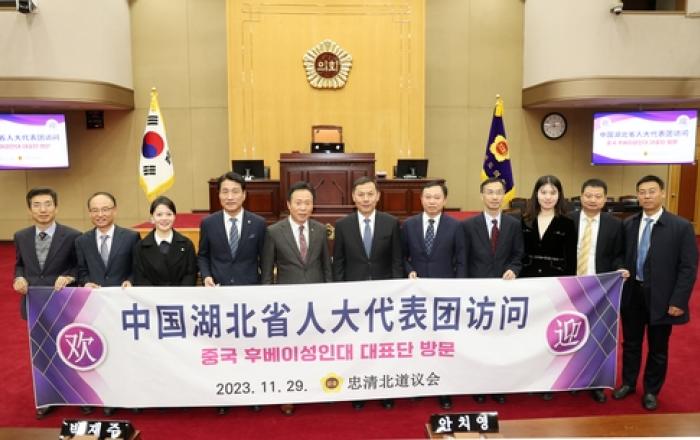 충북도의회는 29일 중국 후베이성인민대표대회(인대) 대표단을 공식 초청해 양 지역 간 우호증진 및 교류협력 추진을 위한 환담을 나눴다. 이날 환담에는 황영호 도의장을 비롯한 김호경 의회운영위원장, 안지윤 의회운영부위원장이 참석했고, 후베이성에서는 마궈창 상무위원회