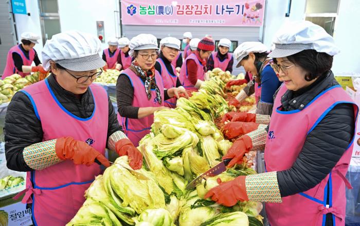 충북농업기술원은 11월 28일(화) 기술원 내 미래농업교육센터에서 지역사회 이웃에게 사랑 나눔 실천을 위해 한국생활개선충북연합회(회장 곽애자) 도 및 시군 임원 26명과 함께 김치담그기(500포기) 봉사활동을 실시했다고 밝혔다. 또한 김치를 담는데 필요한 절임배추와