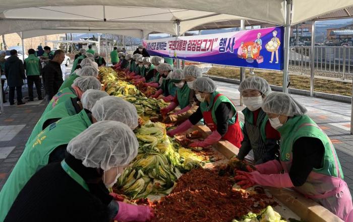 세종특별자치시가 지난 27일 장군면 늘품센터에서 정부 국민대통합 김장행사와 함께 김장나눔 행사를 개최했다. 이날 김장행사는 정부 주최 2023 대통합 김장행사의 취지에 맞게 노인, 청년, 외국인, 새마을회원 등 50여 명이 참여한 가운데 진행됐다.