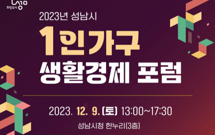 성남시는 오는 12월 9일 오후 1시~5시 30분 시청 3층 한누리에서 시민 100명이 참여하는 ‘1가구 생활경제 포럼’을 연다. 성남시 전체 37만6179 가구의 33%를 차지하는 1인 가구(12만5515가구)의 안정된 생활 설계 방안을 모색해 시책에 반영·전파하
