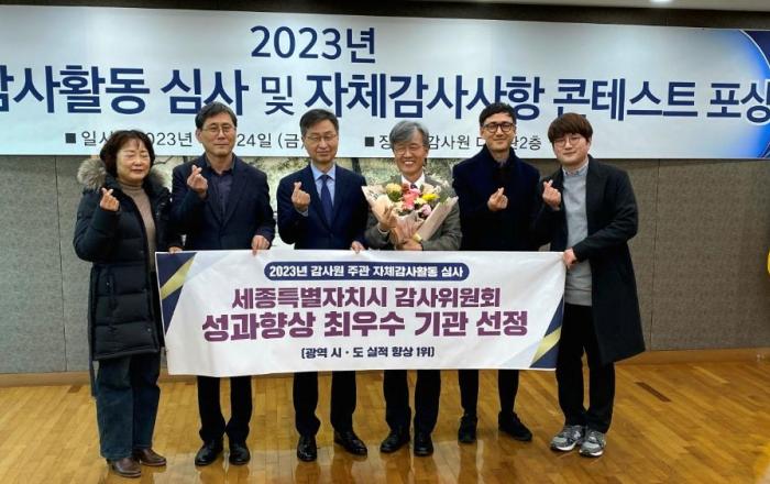 세종특별자치시 감사위원회가 감사원 ‘2023년 자체 감사 활동 심사’에서 성과 향상 최우수 기관으로 선정돼 감사원장 표창을 받았다. 감사원은 매년 중앙행정기관, 지방자치단체, 공공기관 등을 대상으로 자체감사활동을 심사해 자체감사의 개선과 발전을 유도하고 국가 전체