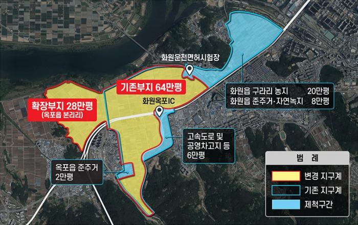 대구광역시는 대구 제2국가산업단지(대구 미래 스마트기술 국가산단)의 조성원가 인하와 제조용지 추가 확보를 위해 당초 3,294천㎡(약 100만 평)로 계획했던 사업구역 중 생산녹지와 준주거지역 일부를 제외하고, 대신 보상비가 저렴한 개발제한구역 농지를 추가해 3,042