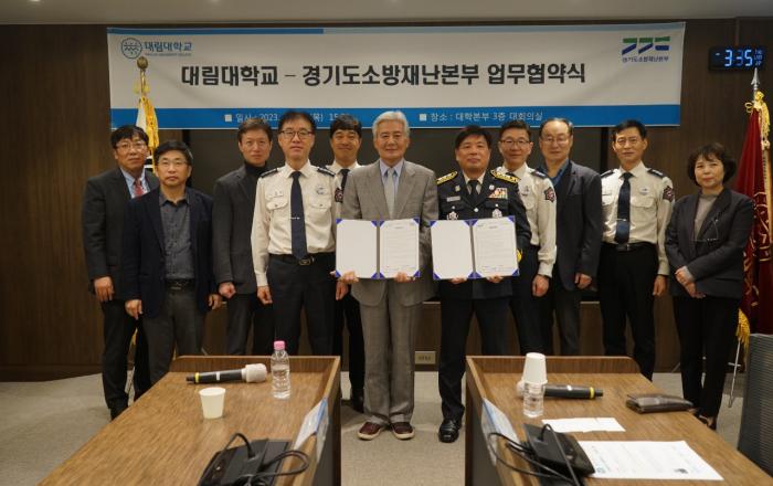 경기도소방재난본부가 학술 및 정보교류를 통한 소방공무원 교육훈련 강화를 위해 대림대학교와 손을 맞잡았다. 경기도소방재난본부는 지난 23일 오후 대림대학교와 소방(안전)분야 인재개발을 위한 업무협약을 체결했다고 24일 밝혔다.