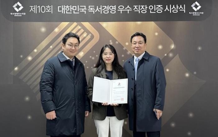 군포도시공사가 지난 15일 국립중앙도서관 국제회의장에서 문화체육관광부 주최로 열린 '제10회 독서경영 우수직장 인증사업 시상식'에서 2년 연속 독서경영 우수직장 인증을 획득했다. 독서경영 우수직장 인증사업은 문화체육관광부가 매년 직장 내 책 읽는 문화를 확산하기 위