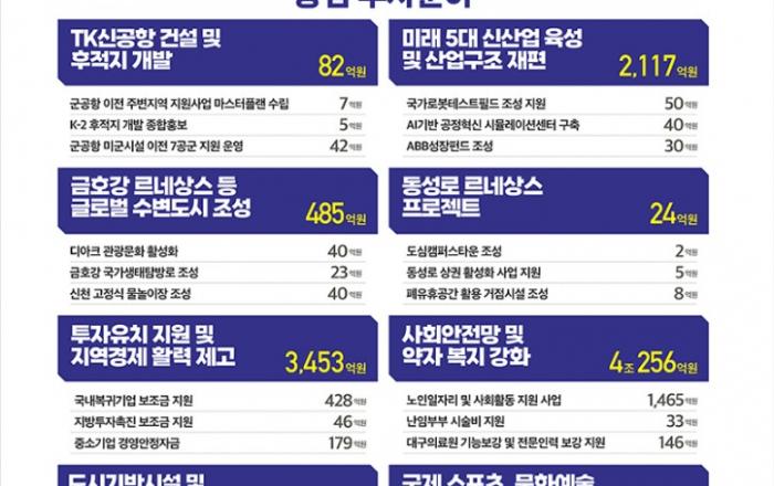 대구광역시는 2024년도 예산안을 올해보다 1,443억 원(△1.34%) 감소한 10조 5,865억 원을 편성해 대구광역시의회에 제출했다. 대구광역시 예산안이 전년보다 줄어든 경우는 1998년 IMF 외환위기 이후 25년 만에 처음으로, 부동산경기 회복 둔화와 내수
