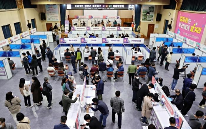 인천 미추홀구는 3일 '체험하고! 컨설팅받고! 취업하고! 고!고!고! 채용박람회'를 구청 대회의실에서 개최했다. 이번 채용박람회에는 50개의 기업이 참여해서 5백여 명의 구직자에게 현장 면접 기회를 제공했다. 박람회장에는 취업 준비를 위한 발성 훈련, 수정 메이