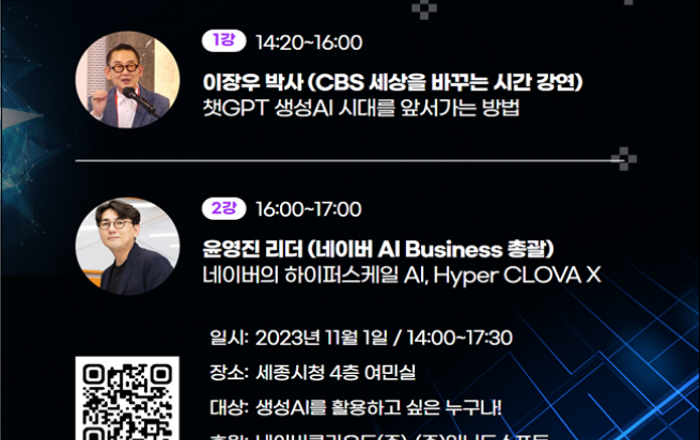 지난해 공개돼 큰 관심을 일으킨 대화 전문 인공지능 챗봇 ‘챗지피티(GPT)’와 네이버가 개발한 ‘하이퍼클로바 엑스(X)’ 등 생성형 인공지능(AI) 기술을 국내 최고 전문가로부터 배우는 자리가 마련된다. 세종특별자치시(시장 최민호)와 세종창조경제혁신센터(센터장 오