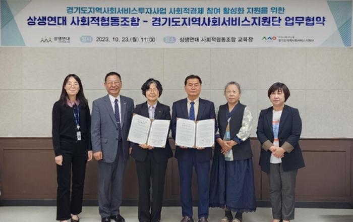 경기도사회서비스원 경기도지역사회서비스지원단은 지난 23일 상생연대 사회적협동조합과 사회적경제조직의 지역사회서비스투자사업 참여 활성화를 위한 업무협약을 체결했다고 밝혔다. 두 기관은 상반기 사회적경제 기본교육을 함께 진행하며 지역사회서비스투자사업의 지속가능성을 위한